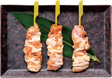 串の上で、鶏肉が重力に負けず「プリッと立つ」。